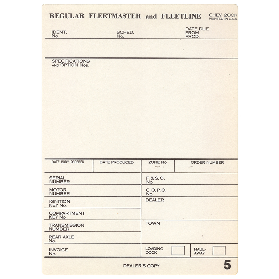 48-52 Chevrolet Car - Factory Build Sheet