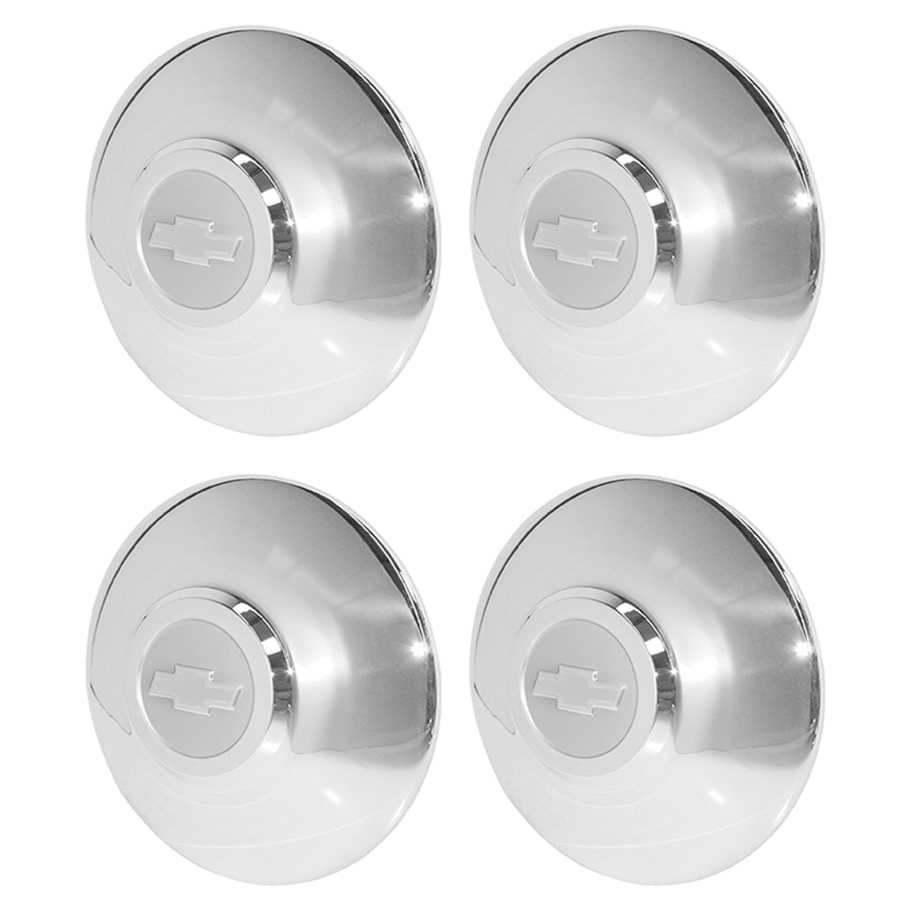 (49-50 Style) Rally Wheel Hub Cap Set, Chrome w/ Bowtie w/o Painted Details Fits Rally Wheels not stock wheels.