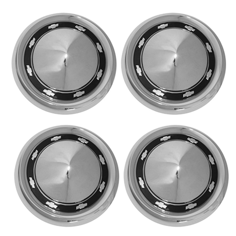 56 Chevrolet Passenger Car 150-210 Small Hub Cap Set, Chrome w/ Black Painted Details, 4-Pieces