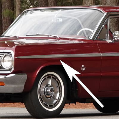 64 Chevrolet Impala SS Front Fender Molding, LH or RH