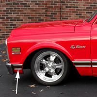 69-72 Blazer Front Lower Fender Molding, Black, LH