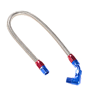73-87 BB 22" Fuel Pump To Duel Feed Inlet Hose & Fitting Kit, Steel Braided Line, With Anodized Fittings, 3/8" Fittings.