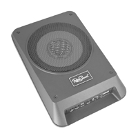 Universal 100 Watt Powered 8” Subwoofer, Black Aluminum Enclosure, High/Low Inputs, Adjustable Crossover Network (50-100hz), Adjustable 0-180 Degree Phase Control, Frequency Response Range: 35-100hz Enclosure Size: 9” X 2.75” X 13.75”