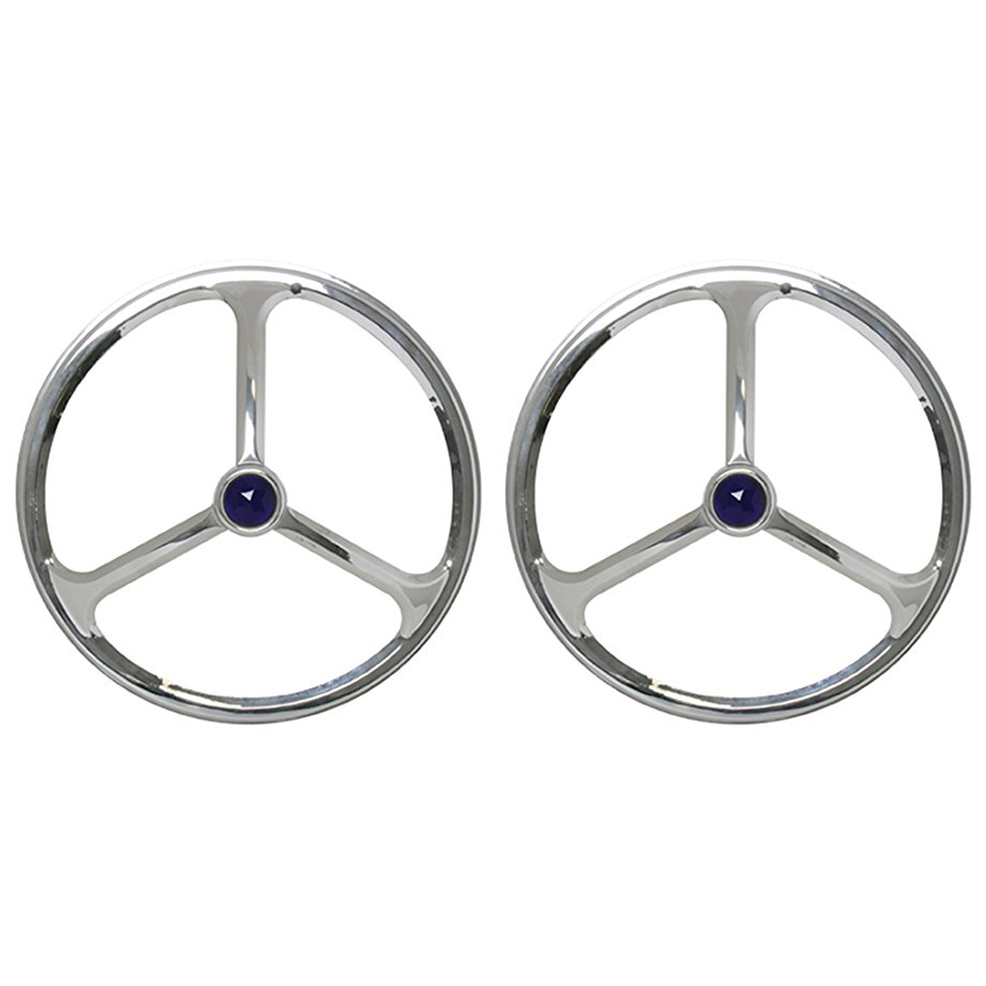 40-57 Chevrolet Headlight Covers, "Lucas", Chrome w/ Blue Dot, Pair