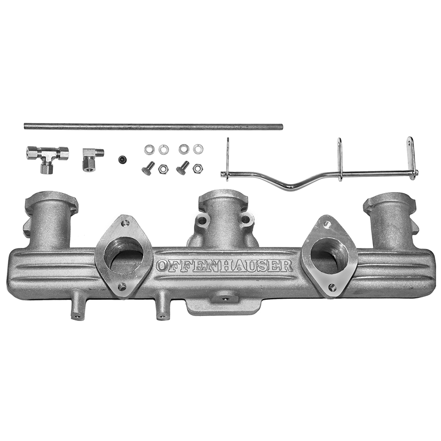41-52 Chevrolet Full Size 6-Cyl 216 Car - Offenhauser Dual Carb Intake Manifold, Kit Offenhauser dual 1BBL intake manifold with linkage.