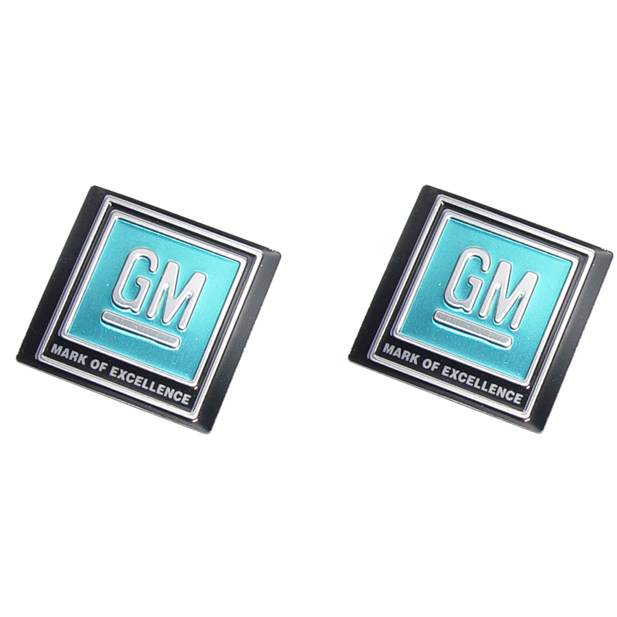 41-57 Chevrolet Full Size Universal Seat Belt Emblem, Rectangle, Blue with GM, Pair
