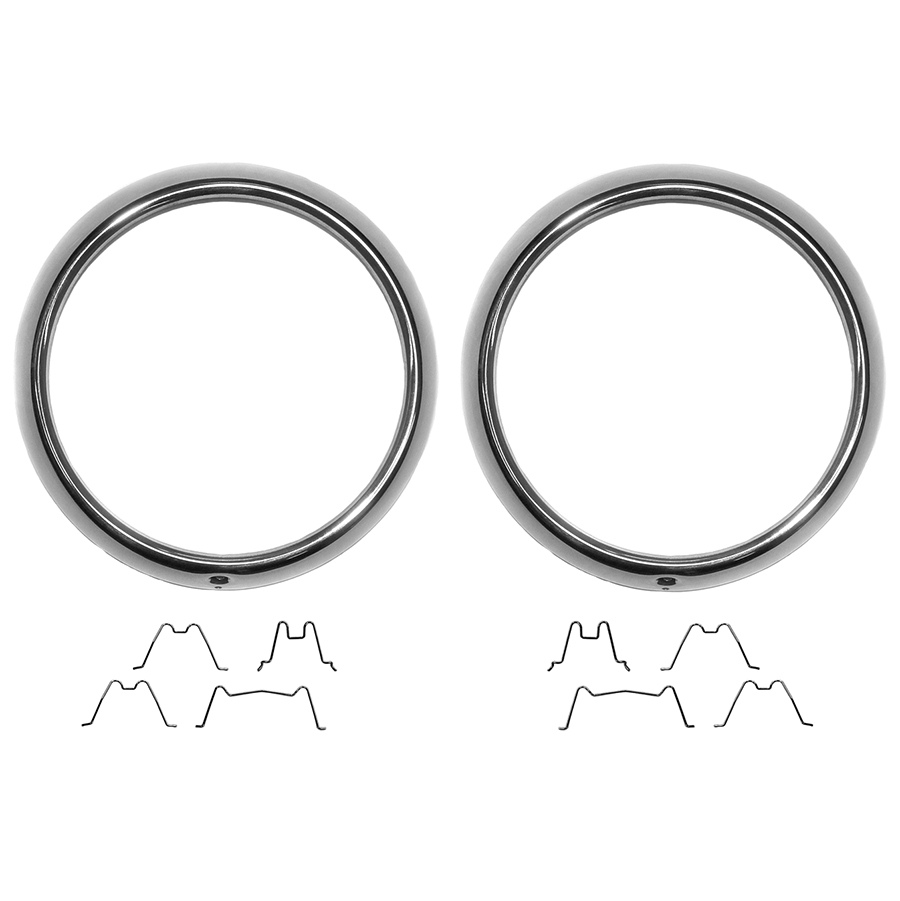 47-55 1st Series Headlamp Bezels Polished stainless steel, includes clips. 7" Bulb, 9 1/8" O.D.