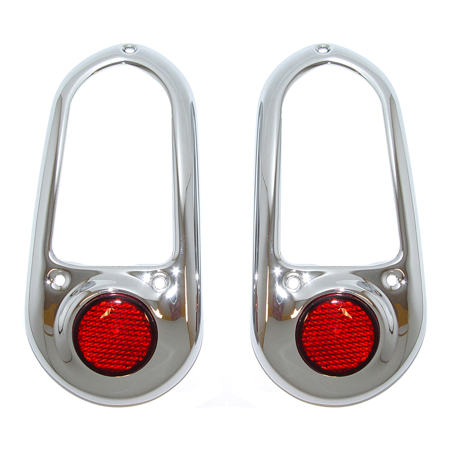 49-50 Chevrolet Tail Lamp Bezels Chrome w/ Red Reflectors, Pair