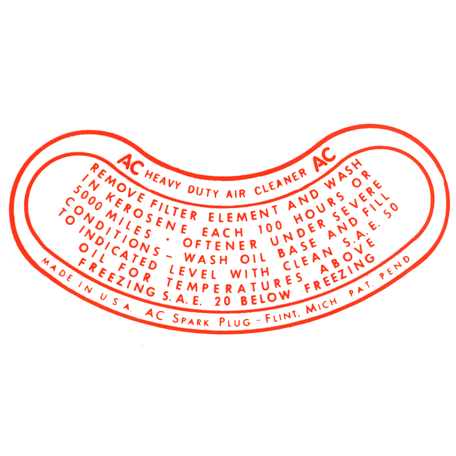 49-54 Chevrolet 6-cylinder Car - Oil Bath Air Cleaner Decal