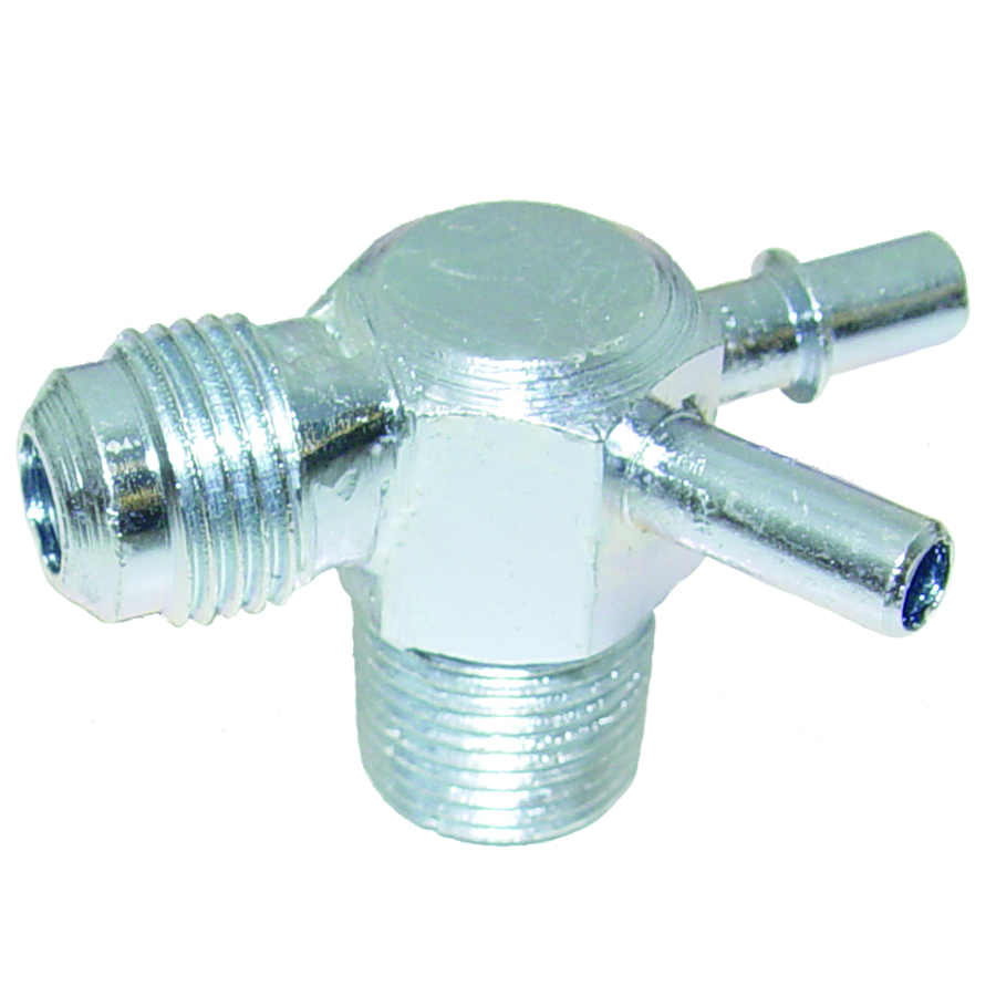 49-57 Chevrolet Full Size Power Brake Booster T-Fitting, 3-Port, (1) Threaded & (2) 1/4"
