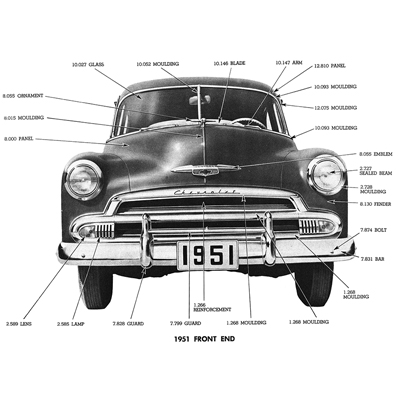 51 Chevrolet Passenger Car Center Grill Bar, Chrome w/ Holes for Grill Teeth