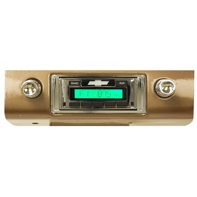 53-54 Chevrolet Full Size Model 230 AM/FM Stereo, Replaces Push Button Original Radio. 12 Volt. Custom Autosound. -200 Watts Increased Power Rating - AM/FM - No Cassette - Auxiliary Input For I-Pod, MP3, DVD or Satellite - Digital Clock - Upgraded AM/FM Tuners For Optimum Reception - Scan & Seek - 4-Channel RCA Pre-Out - Separate Bass & Treble Controls - Front & Rear Fader - 18 FM & 12 AM Presets - 2-Year Manufacturers Warranty