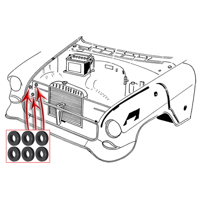 54-56 Chevrolet Full Size Grommet Set - Head Light, Park Light & Horn Wire, 6 Piece Kit
