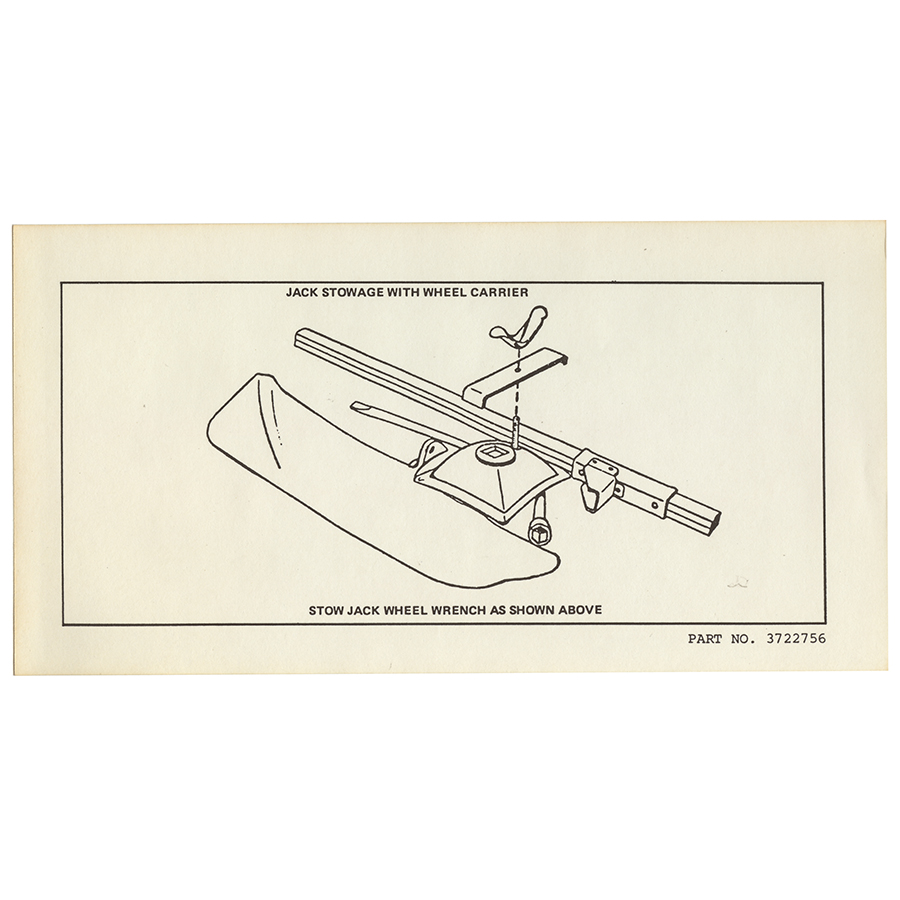 54-61 Chevrolet Full Size Car - Continental Kit Jack Stowage Tag