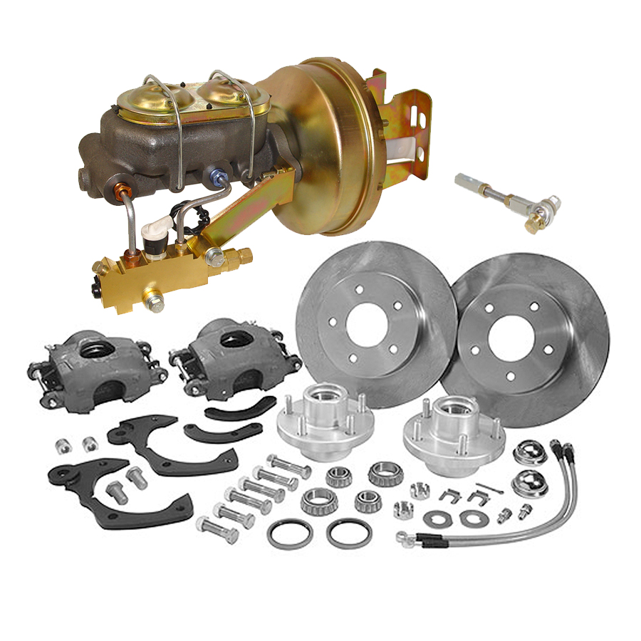Kit Includes: 1 "disc brake component kit" (#55-080011) plus, 1 booster, 1 master cylinder, 1 proportioning valve, 1 proportioning valve mounting bracket, 1 prop valve to master cylinder line kit.