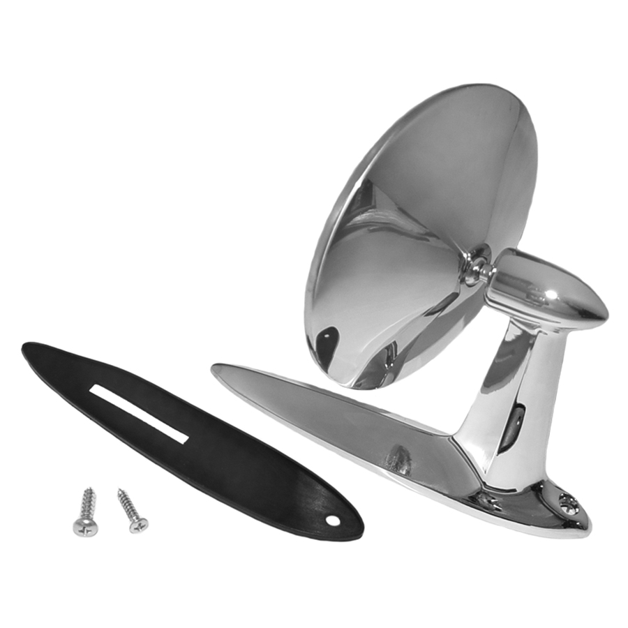 55-57 Chevrolet Passenger Car Exterior Side View Mirror, LH or RH, Each. Includes gasket and mounting hardware.