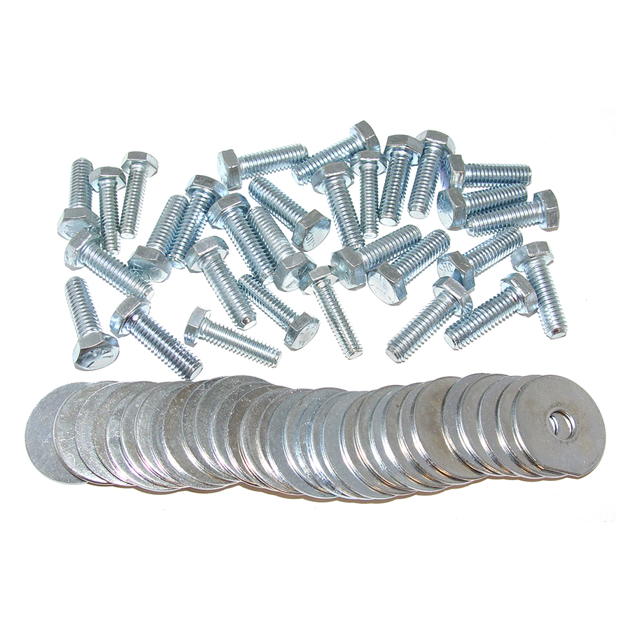 Inner fender washer and bolt kit, Includes all flat washer, spacers, rubber washers, sheet metal wxrews and bolts to fasten inner fenders and lower corner of fenders to body.
