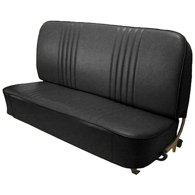 55-59 Bench Seat Cover Kit, Black w/ Pleats Madrid grain vinyl seat cover, smooth with pleats.