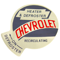 55-59 "Chevrolet" Deluxe Heater Decal, "Recirculating Defroster ON"