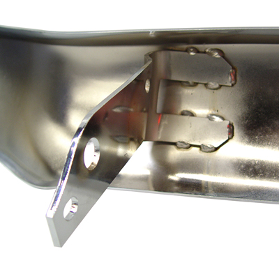 Custom end brackets are welded inside the bumper, no bolt holes.