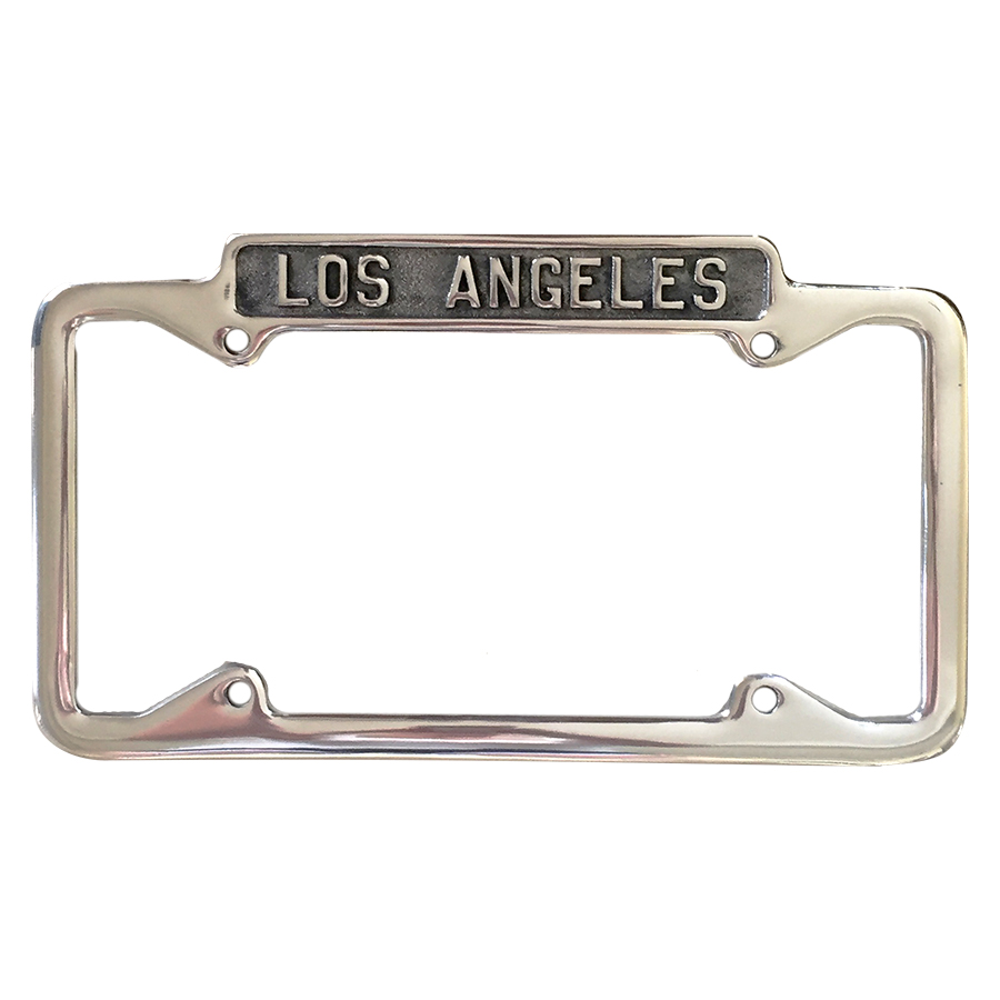 56-59 License Plate Frame, Los Angeles, Polished Aluminum