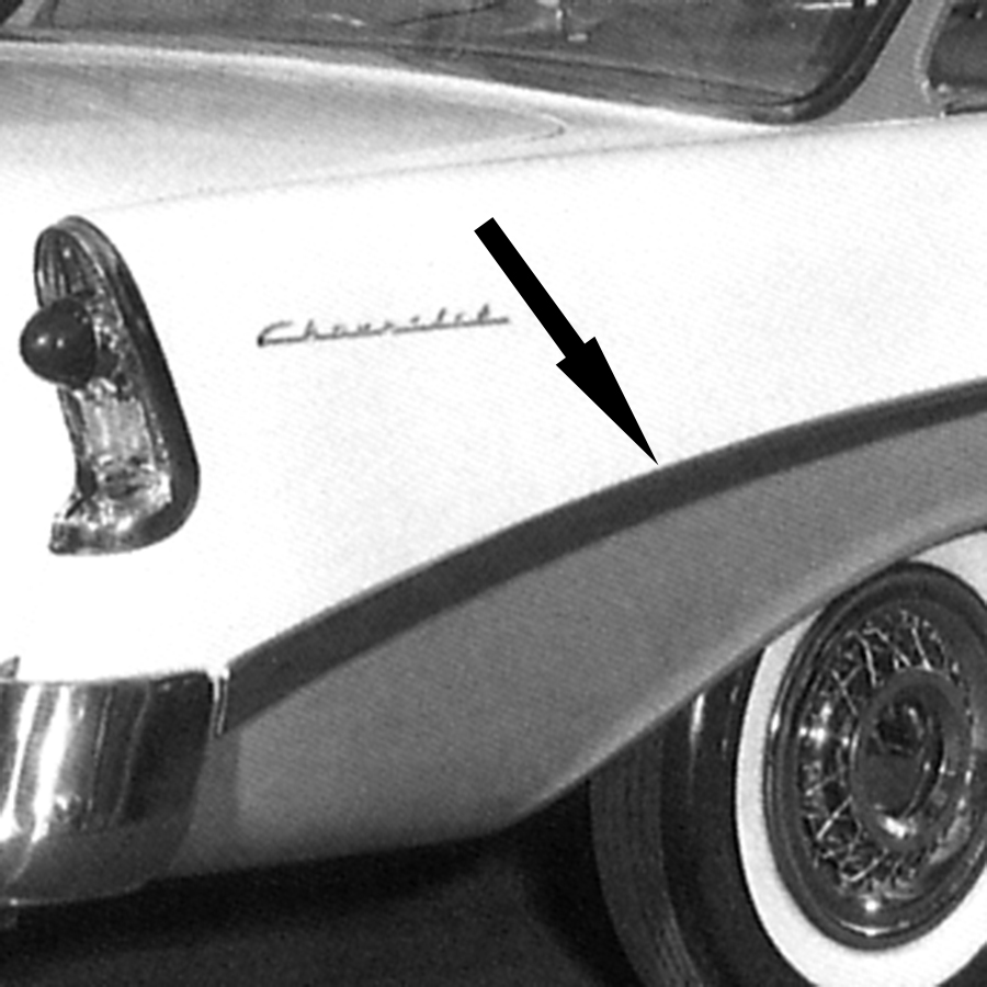 56 Chevrolet Bel-Air 2 Dr. Rear Long Quarter Molding, RH