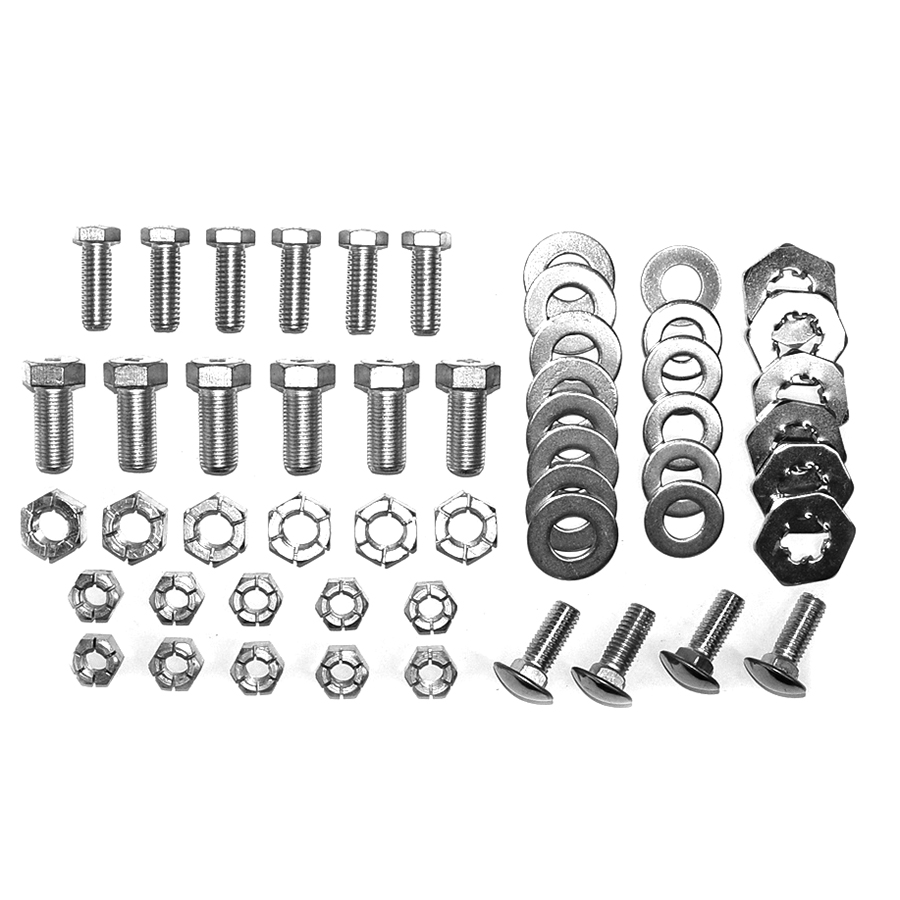 57 Chevrolet Front Bumper Mounting Kit, Exact Original, Includes all hardware to bolt bumper pieces together and to frame, including original marsden nuts and bolts w/original head marks, correct washer diameter and plating.