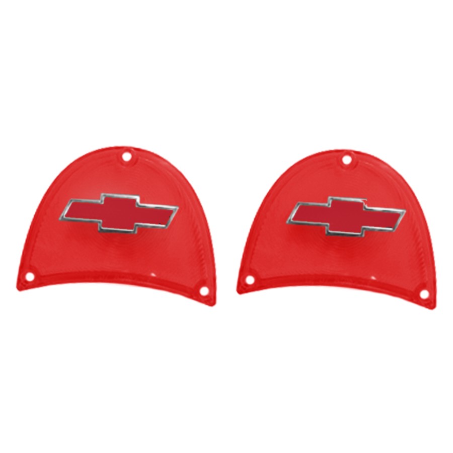 57 Chevrolet Fullsize Tail Lamp Lenses, Red Plastic w/ Red & Chrome Trim Bow tie, Pair