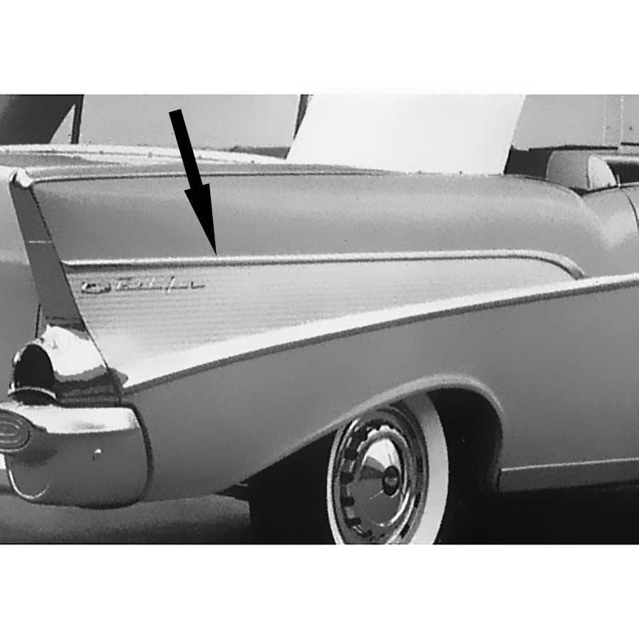 57 Chevrolet Passenger Car 2 Dr. Upper Rear Quarter Molding, LH