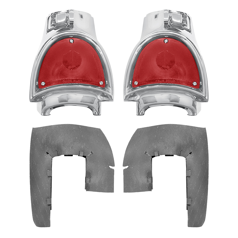 57 Chevrolet Passenger Car Tail Light Assemblies, LH & RH, Pair, U.S. Made Includes Dust Shields, and Retainers.