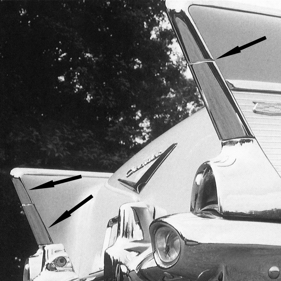 57 Chevrolet Passenger Car Vertical Fin Molding Set, LH & RH 3 Pcs.