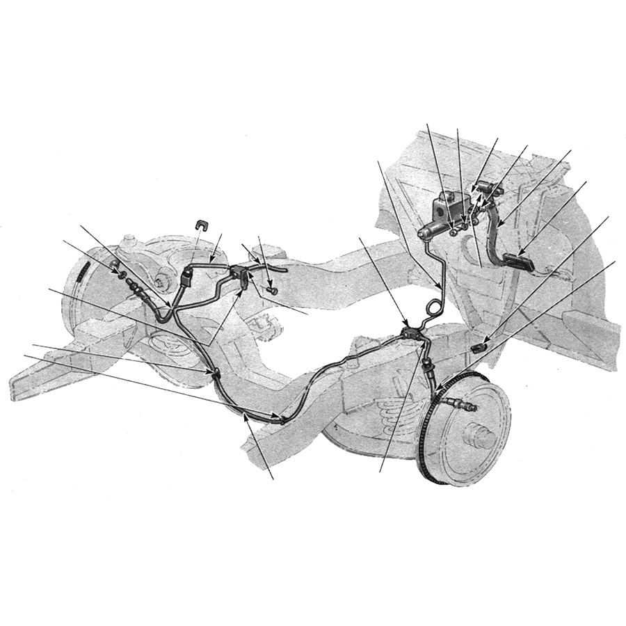 58-64 Chevrolet Car Front Disc Brake Conversion Line Set, Non-Power, Original Material. NOTE: 1958 cars must use 1959-64 front to rear brake lines.