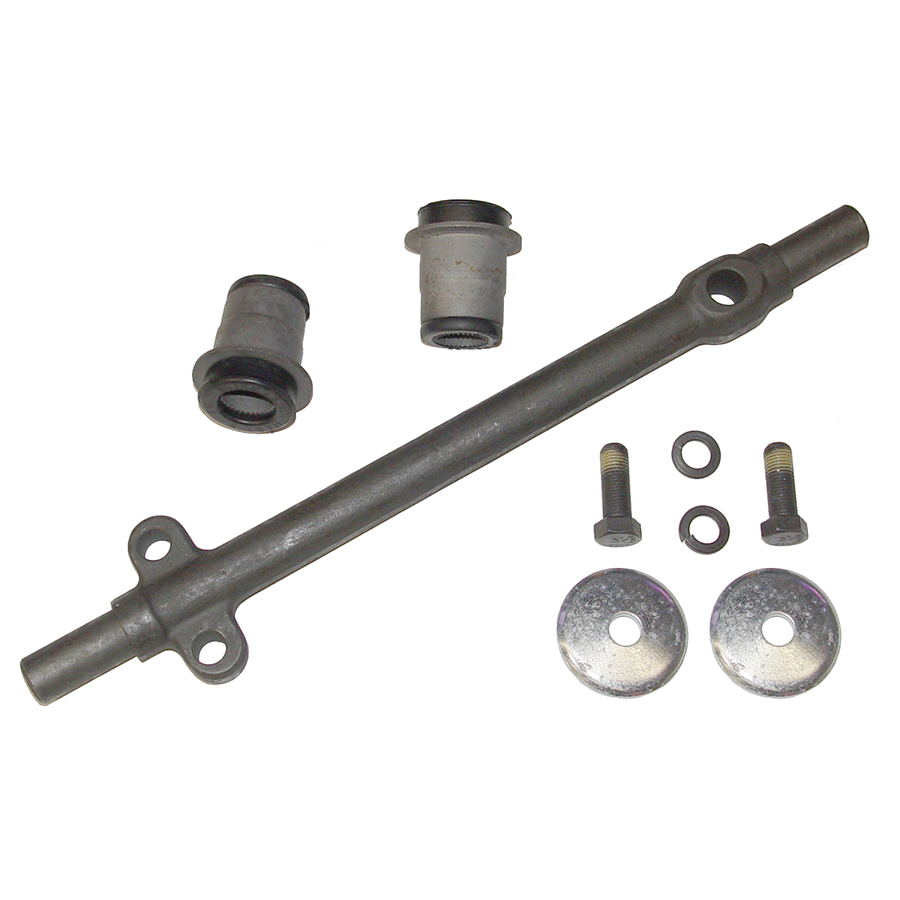 58-67 Chevrolet Car Lower Control Arm Shaft Assembly, LH or RH, US Made. With bushings & bushing hardware. Does 1 side.
