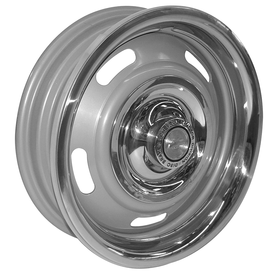 58-72 Chevrolet Fullsize Passenger Car 15 X 6" Silver Rally Wheel, W/ 3-1/2" Backside Setting