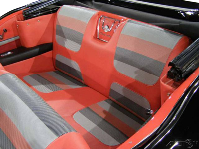 58 Chevrolet Fullsize Impala Convertible Front & Rear Seat Upholstery. Colors Available: Black/Silver/Turquoise Turquoise/Siler Black Coral/Coral/Coral Green/Silver/Green Blue/Silver/Blue Gold/Beige/Copper Red/Silver/Black