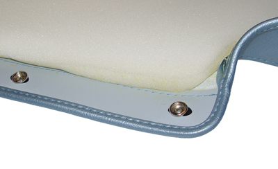 59-60 Chevrolet Fullsize Impala Convertible Top Boots-Aqua. Note: Each Top Boot Is Assembled To Match The Design Of The Original, Including All Double-Turned Binding, Exact Rubber And/ Or Plastic Reinforcements and Die-Cut Pads. Features Hidden Snaps As Original.