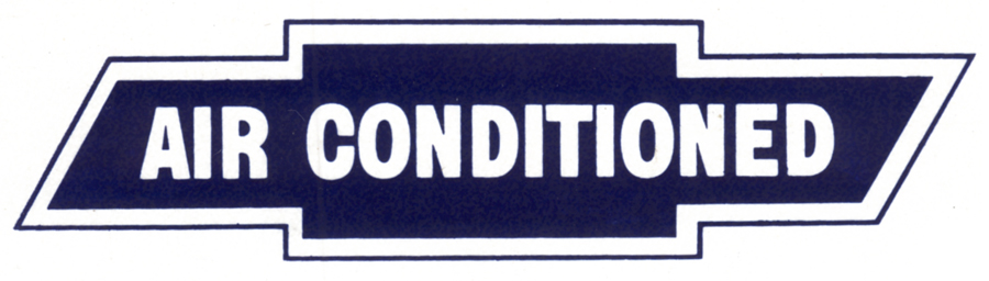 60-61 Air Conditioned Window Decal, White Copy/ Blue Bow Tie Background