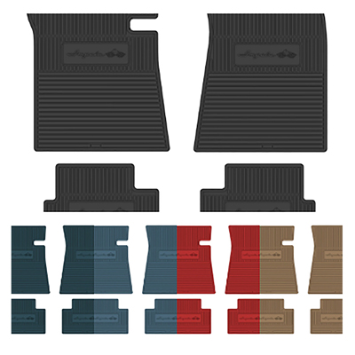 63-64 Chevrolet Custom Rubber Floor Mats Set, 4 Pc, "Impala" & ¼ Panel Logo, Turquoise