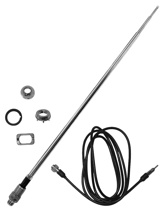 63-64 Chevrolet Fullsize Passenger Car Front Antenna Assembly, Telescopic. Note: Includes Cable