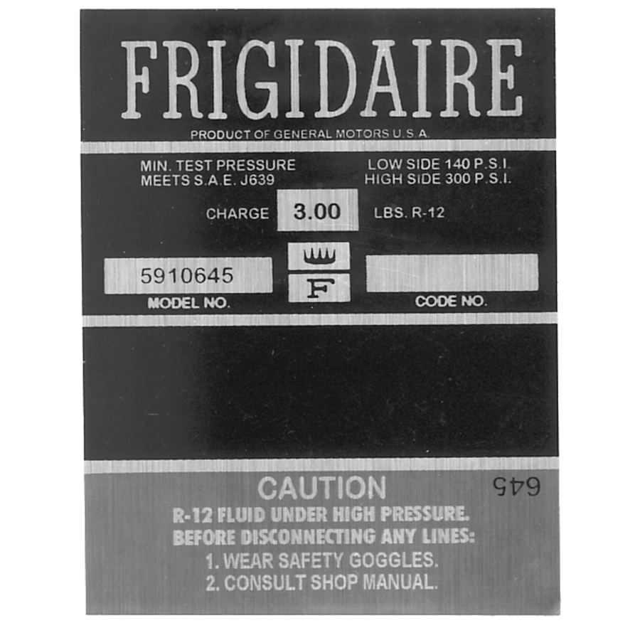 63-65 Full Size A/C Compressor Labels Frigidaire