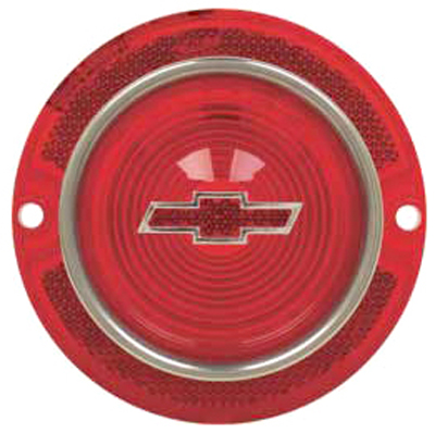 63 Chevrolet Full Size Passenger Car Tail Light Lens, Red W/ Bow Tie & Trim