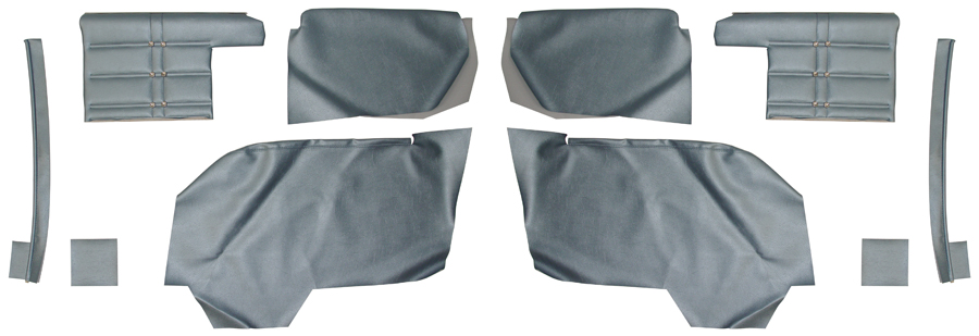 Rear Coupe Kits: LH & RH 1/4 Trim Panels, Lh & Rh Lower Armrest Covers, 1 Pair Rear Windlace, Attaching Clips & Buttons Where Required.