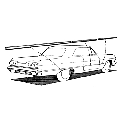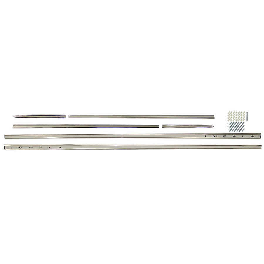 63 Chevrolet Impala 2-Door, Complete Side Molding Set, with Mounting Hardware.