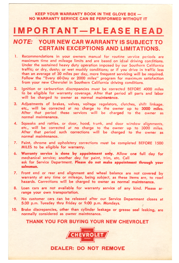64-72 Factory Warranty Sheet