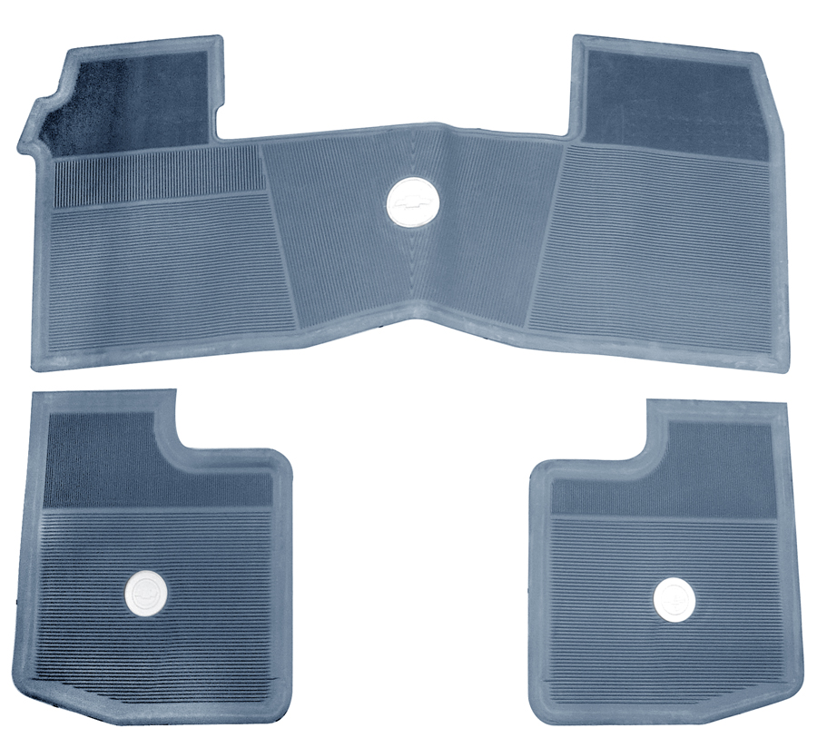 64 Chevelle Bow Tie Rubber Floor Mats Original Style, Medium Blue