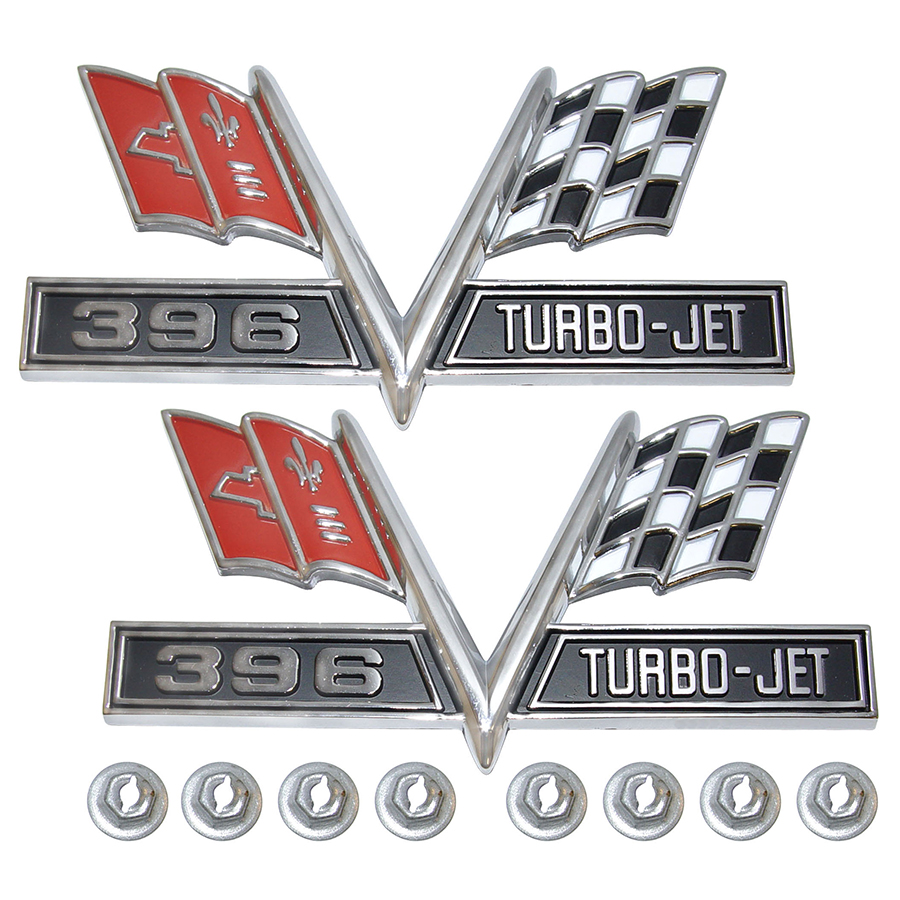 65-67 Chevrolet Fullsize Passenger Car "396 Turbo Jet" Front Fender Emblems.