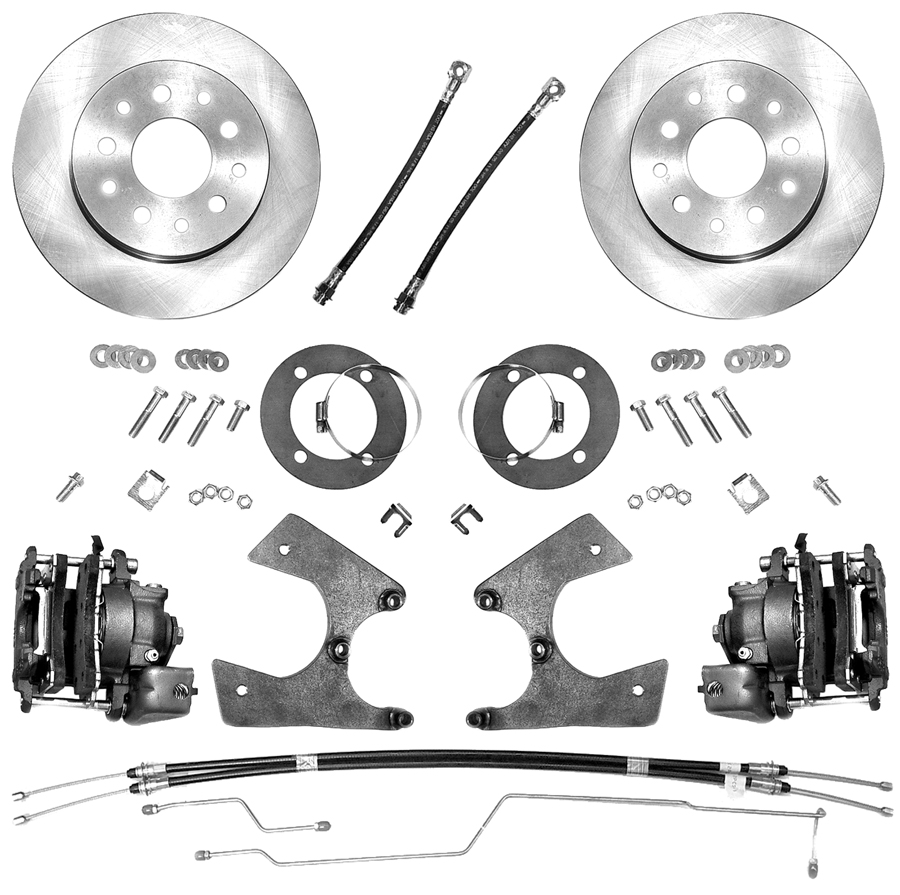 65-72 Chevrolet Car Rear Disc Brake Kit Includes custom rear e-brake cables & hard lines.