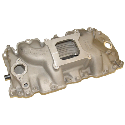 New big block 1965 intake manifold #3866963. Used on all high performance 396/375 & 425 HP Chevrolet models, with correct "W" snowflake, Winters castings. Replaces GM #3866963. Rectangular port.