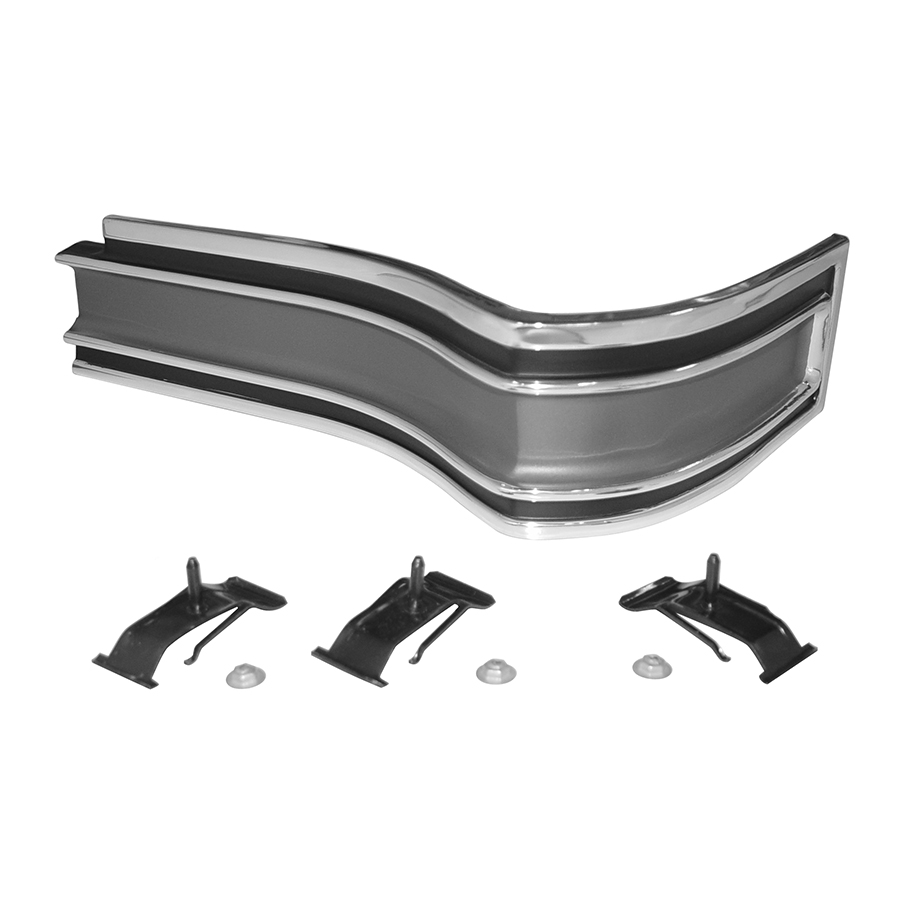 65 Chevrolet Impala "SS" Rear Outer Corner Molding W/ Clips-Silver/Black RH