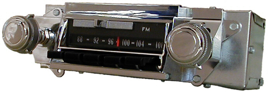 67 Chevelle / El Camino Reproduction AM/FM/Stereo Radio, Bluetooth Small size, BIG features. Rare option! Looks original but offers today's technology. Quality chrome plated faceplate and knobs exactly match original radio. Fits your dash without any modifications. 4 x 45 watts RMS output allows up to 180 watts of audio power. AM/FM roll-over dial scale looks and works like original. Analog controls look and feel like the original radio. All controls easily accessible. Volume, treble, bass, balance, fader and tuning from original looking controls. MP3, iPod, CD or XM Satellite inputs included. 7/16" shafts for mounting exactly match original radio. LED dial lights will never need replacing. Digitally tuned AM/FM/Stereo front end provides stable, high quality reception. Blue Dot Stereo indicator. Dial face lights white. You deserve the best - don't settle for less. European channel spacing optional.